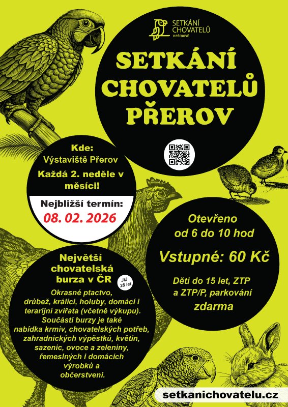 Pravidelné setkání chovatelů v Přerově, které probíhá každou druhou neděli v měsíci od 6:00 do 10:00 hod. Jedná se o burzu chovatelů okrasného ptactva, drůbeže, králíků, holubů a domácích zvířat včetně výkupu. Lze nakoupit také krmivo, chovatelské potřeby, zahradnické výpěstky, květiny, přísadu, ovoce a zeleninu, různé řemeslné a domácí výrobky. Občerstvení zajištěno.